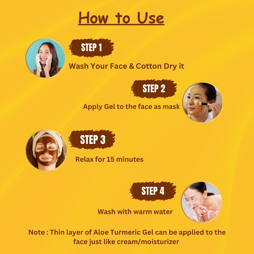 Key Benefits: Hydration & Repair: Aloe Vera provides intense hydration while calming irritated or sensitive skin. Brightens Skin Tone: Turmeric helps to reduce dark spots and enhances natural radiance. Anti-Acne & Anti-Inflammatory: The antibacterial properties of Turmeric prevent breakouts, while Aloe Vera soothes inflammation. Heals & Revitalizes: Promotes skin repair, reduces scars, and improves overall skin texture. Non-Greasy Formula: Ideal for daily use, absorbs quickly without leaving any sticky residue.