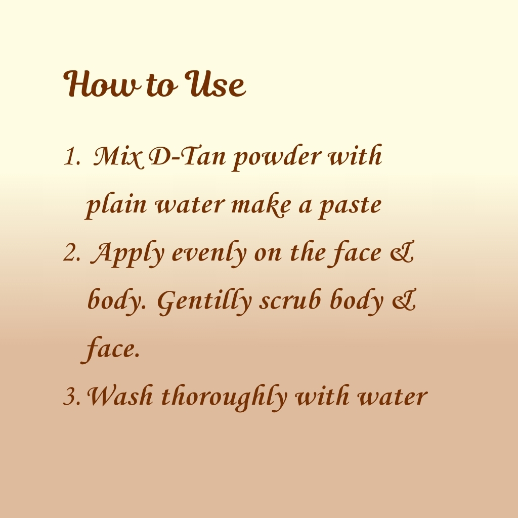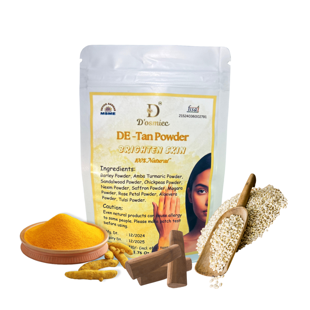 Crafted with pure Ayurvedic ingredients, our De-Tan Powder is free from harmful chemicals and synthetic additives, ensuring a safe and effective skincare solution for glowing, healthy skin.