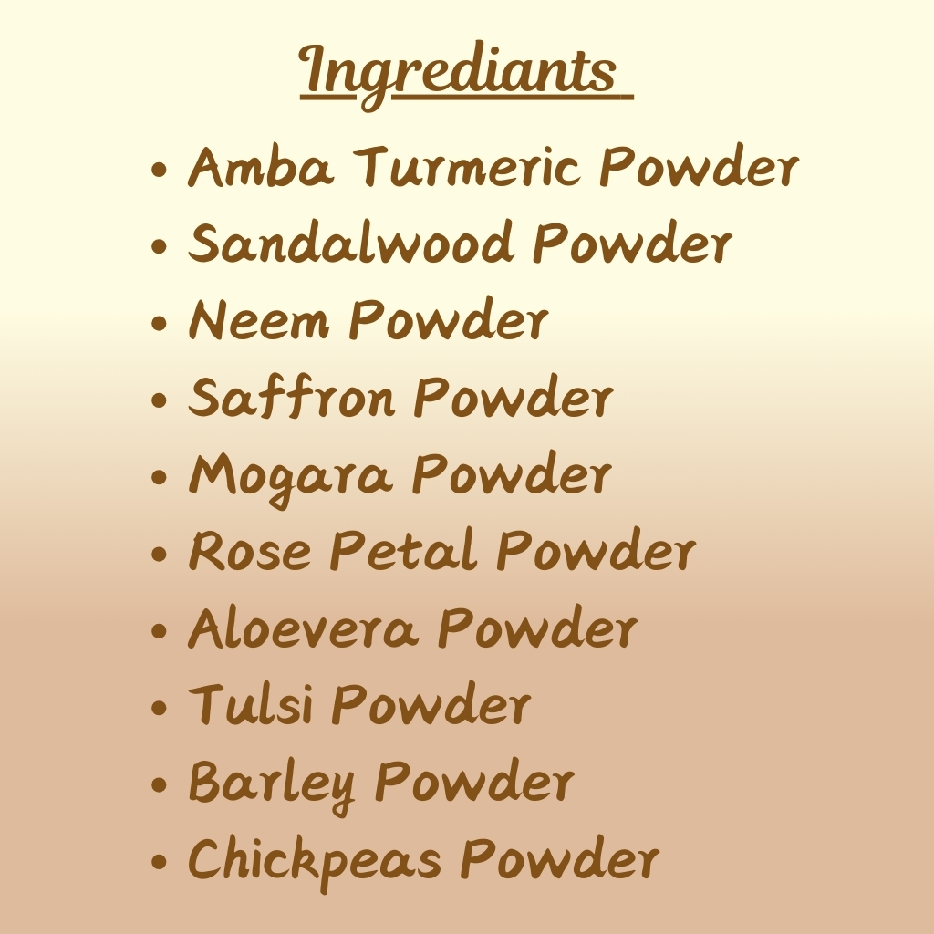 - Sandalwood Powder: Soothes the skin and reduces pigmentation.