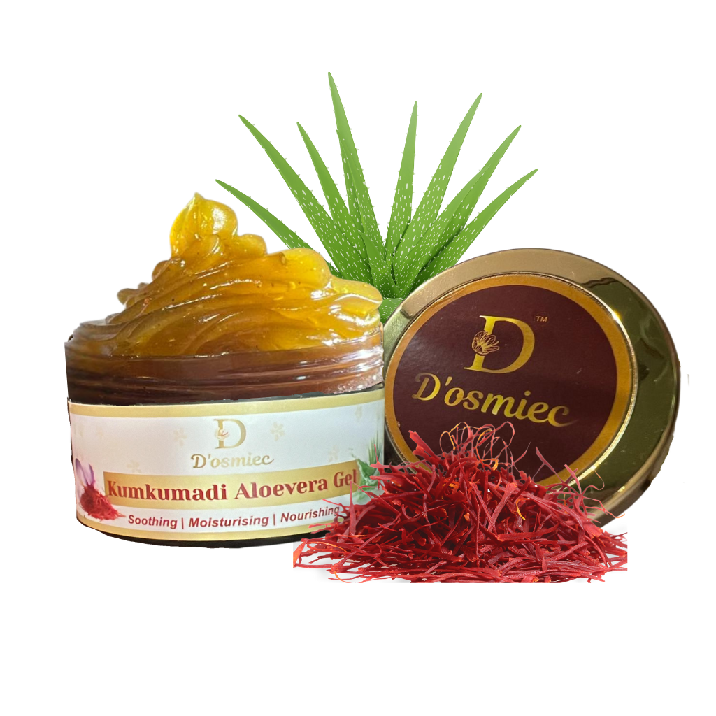 D’osmiec is known for providing 100% authentic & intrinsic products. Like other Kumkumadi products, Kumkumadi Aloevera Gel is also 100% natural & made to provide miraculous skin benefits. Transform your skincare routine with the luxurious Kumkumadi Aloevera Gel, a fusion of ancient Ayurvedic wisdom and modern skincare needs. Enriched with the radiance-boosting benefits of Kumkumadi Herbs and the hydrating power of Aloe Vera, this gel works wonders for your skin. It deeply nourishes, brightens, and rejuvenates, leaving you with a glowing, youthful complexion.