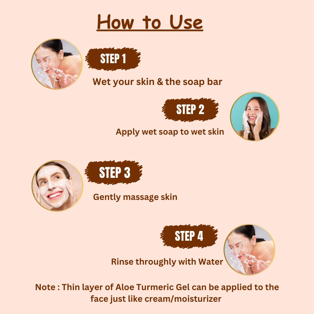 Lather the soap between your hands or on a loofah. Gently massage onto wet skin and rinse thoroughly. Use daily for best results.