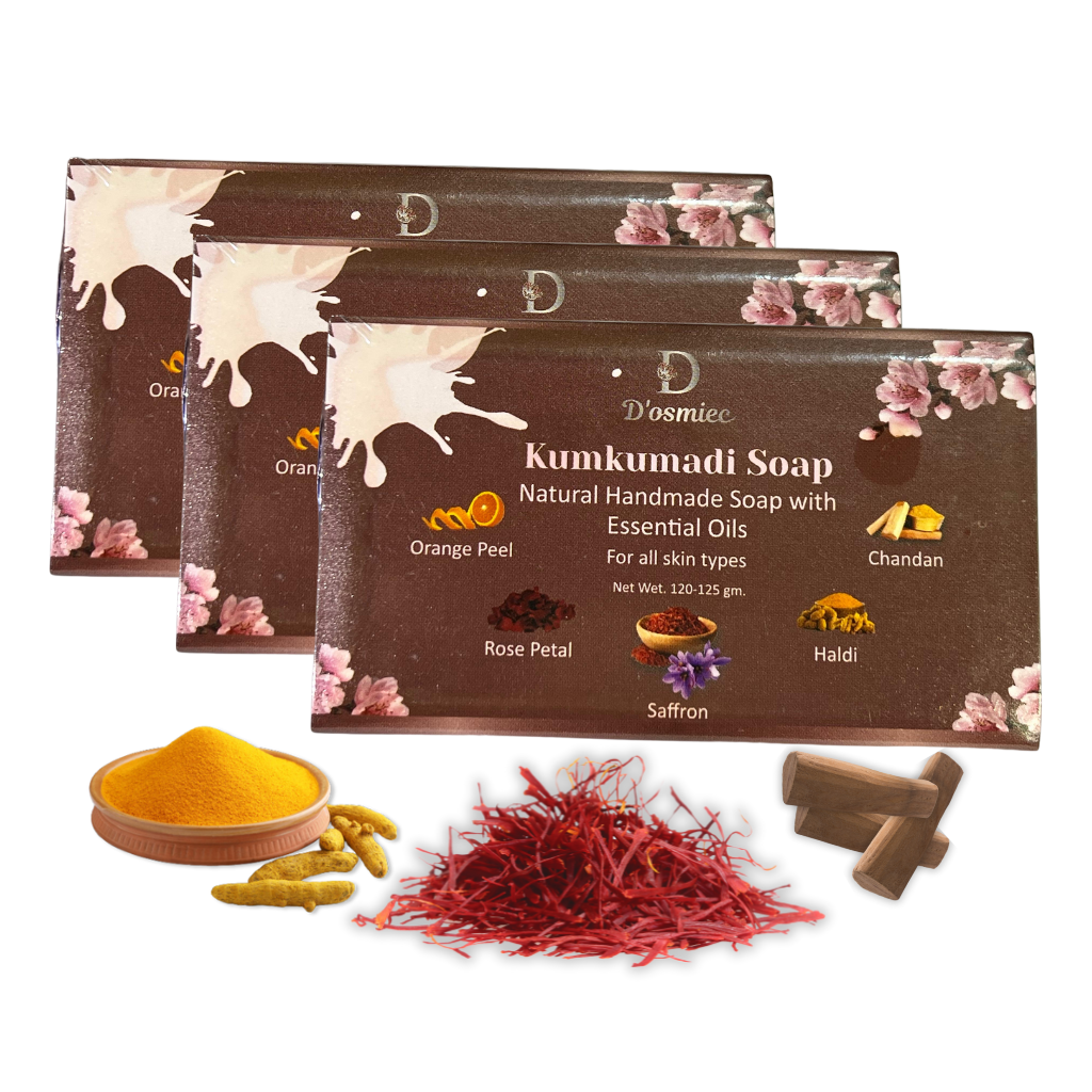 D'osmiec Kumkumadi Soap | Natural Handmade Soap | Natural Soap with Essential Oils | Suitable for All Skin Types | Pack of 3 | (120-125 g)*3 (360 - 375 g)D’osmiec Kumkumadi Soap | Natural Handmade Soap | Natural Soap with Essential Oils | Suitable for All Skin Types | Pack of 3 | (120-125 g)*3 (360 – 375 g)